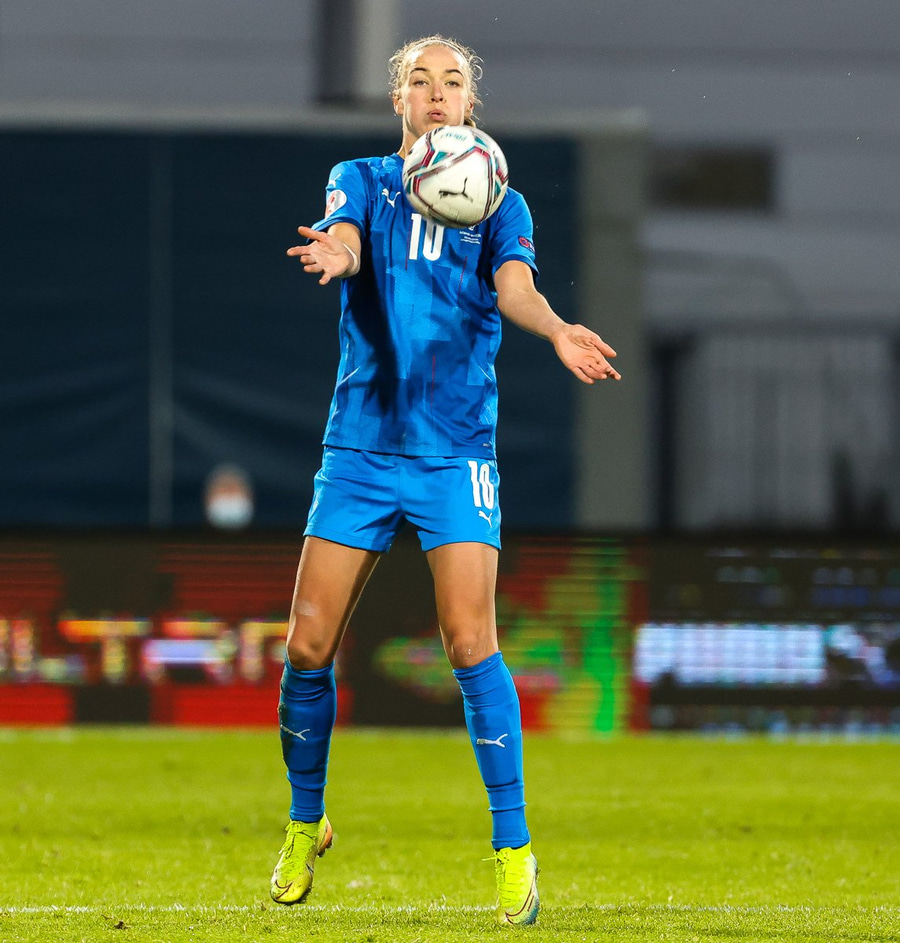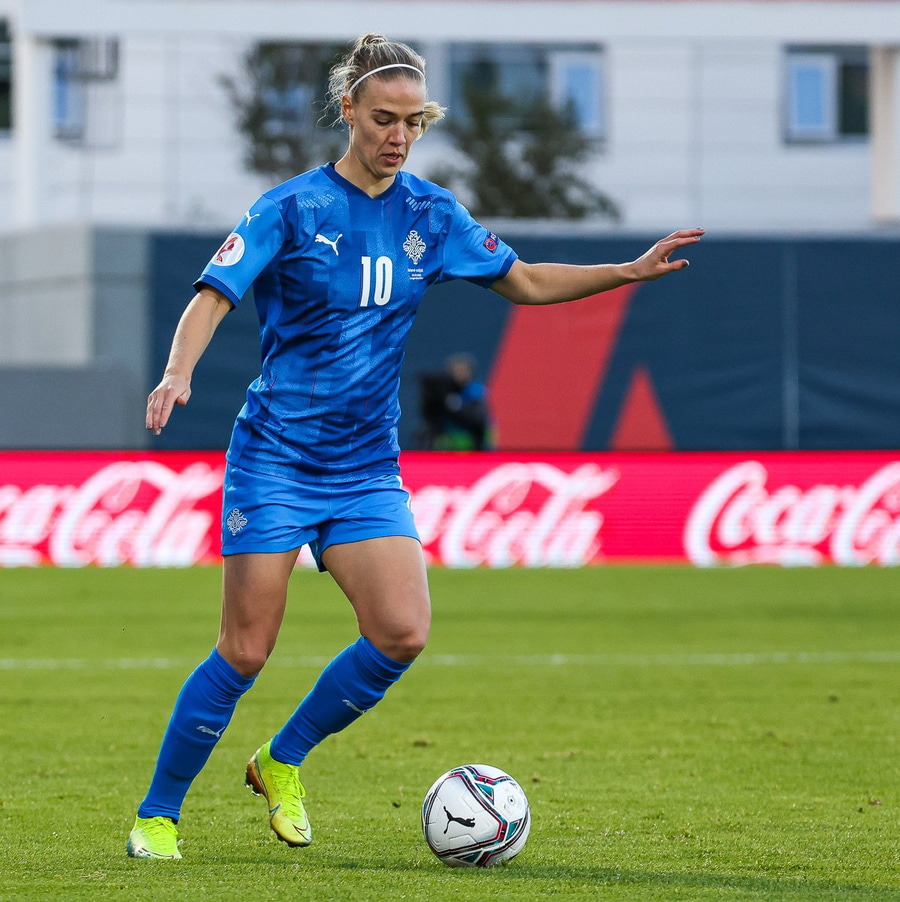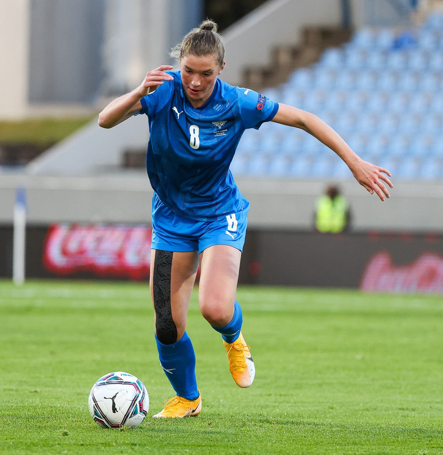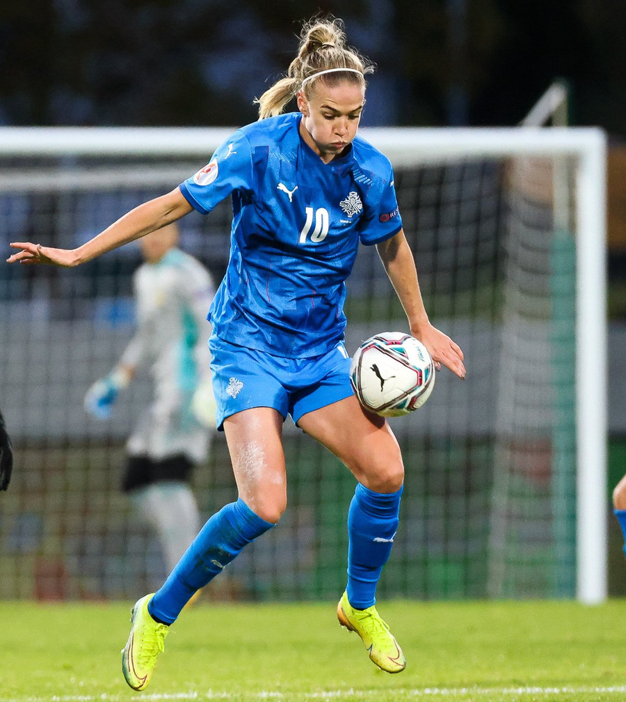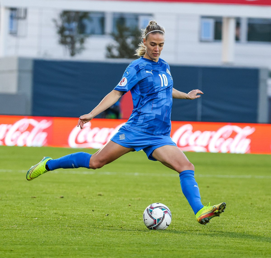 Sara Björk, Evrópumeistari og fyrirliði landsliðsins, spilar að öllum líkindum sinn 133. landsleik í kvöld og getur með því jafnað leikjamet Katrínar Jónsdóttur. Þetta er að sjálfsögðu stórkostlegur árangur hjá Söru.