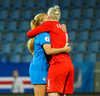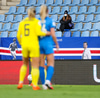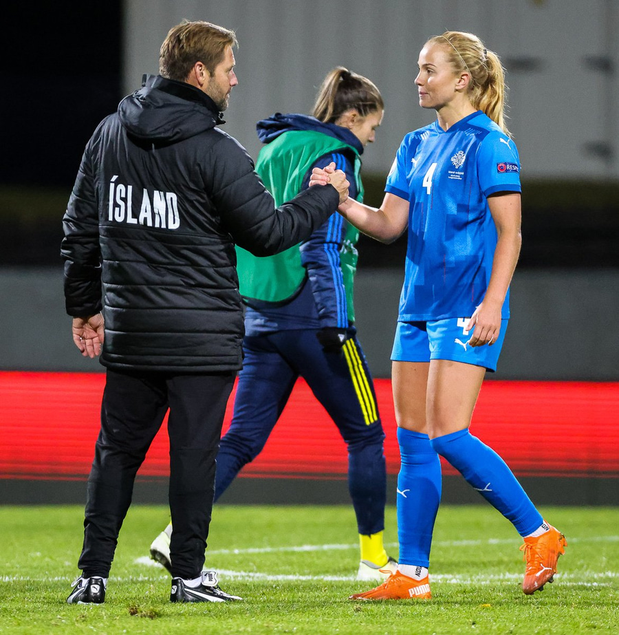 Þá ætla Svíarnir bara að byrja og taka aukaspyrnuna þegar allt íslenska liðið er að fagna. En sem betur fer bannar Ivana þeim það. Fáránlegur dómur, algjörlega fáránlegur og ljótt af Svíum að reyna að taka þetta þegar Íslendingar áttuðu sig ekki á því að hún væri búin að dæma markið af.