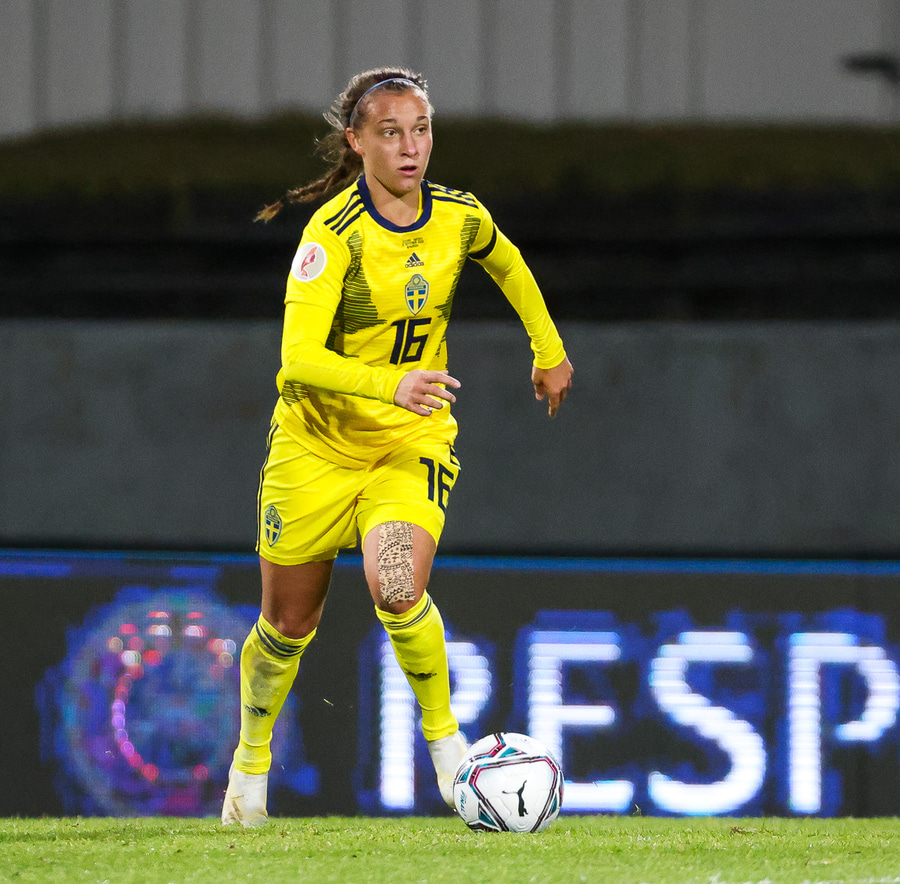 Svíar fá aukaspyrnu á flottum stað, út til vinstri mitt á milli miðju og vítateigs eftir brot Söru á Kosovare. Kosovare tekur sjálf spyrnuna og Sandra kýlir vel í burtu og bægir hættunni frá!