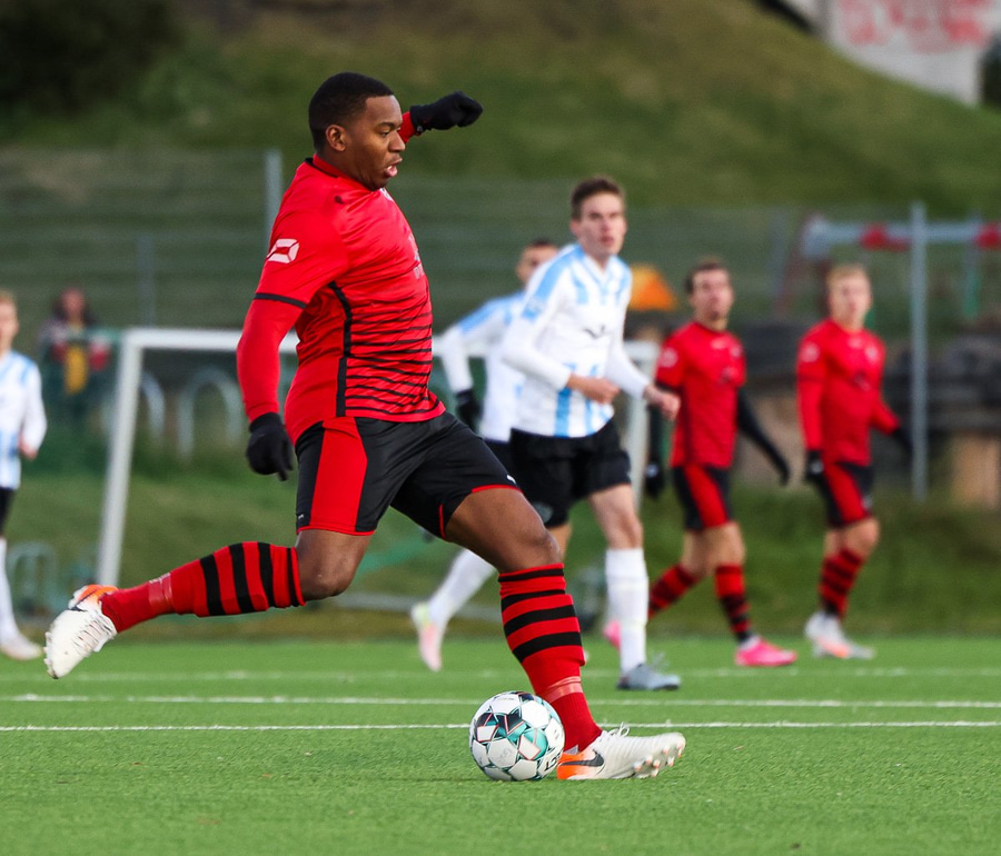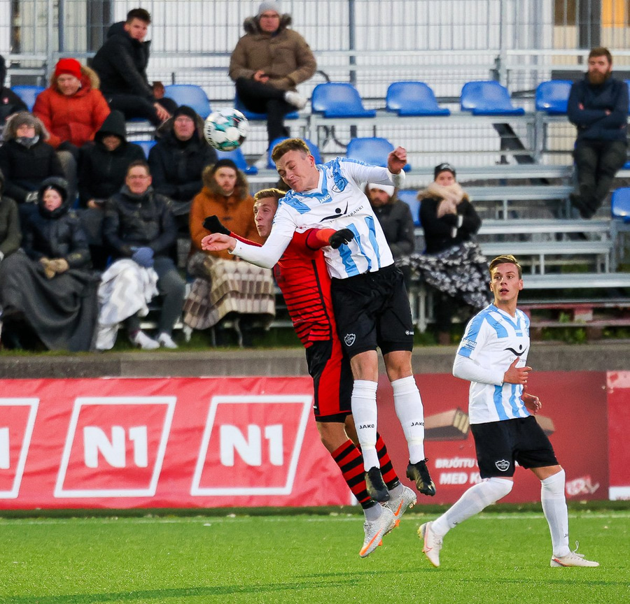 Hákon Ingi á fínan sprett upp hægra megin og reynir fyrirgjöf en Jökull skallar boltann í burtu.
