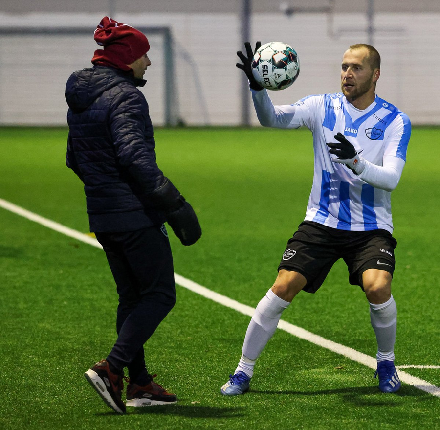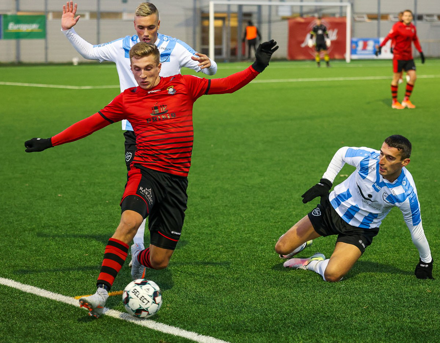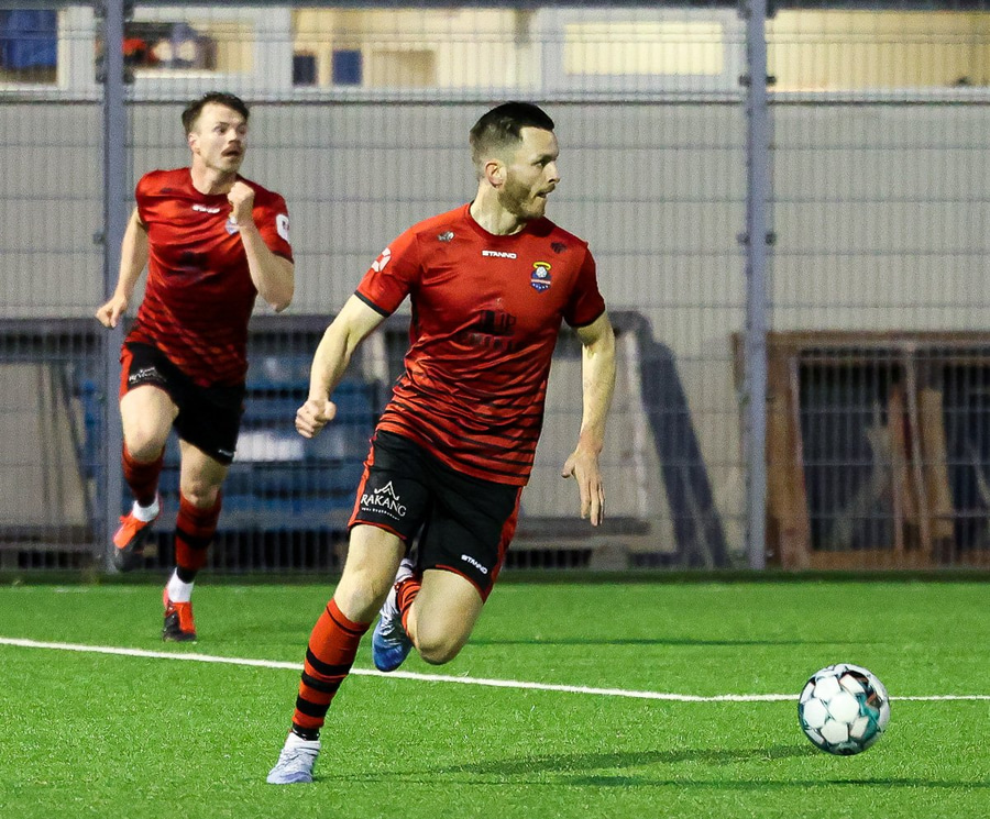 Hákon fær hann og finnur Magga Matt sem kemur með boltann fyrir og boltinn hrekkur út á Danna Gylfa sem hleður í skot en hittir boltann ílla og boltinn framhjá