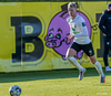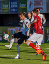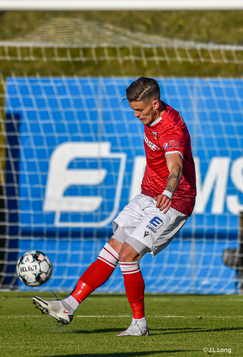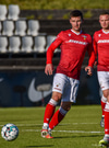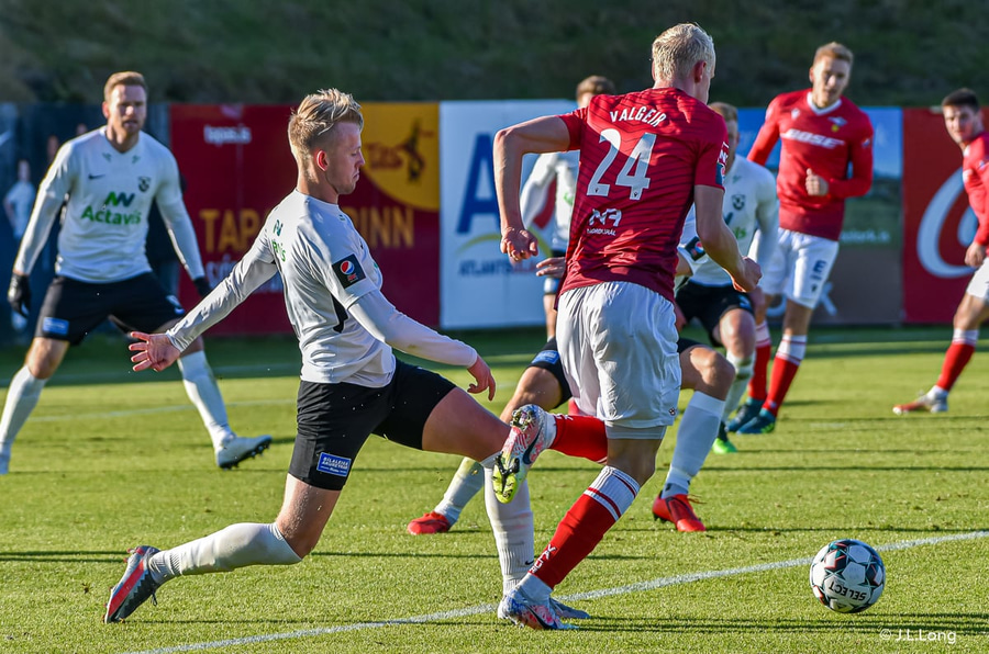Valgeir Lunddal spólar upp vinstra megin og skilur Hörð eftir í rykinu. Fyrirgjöf hans slök og FH hreinsar.