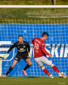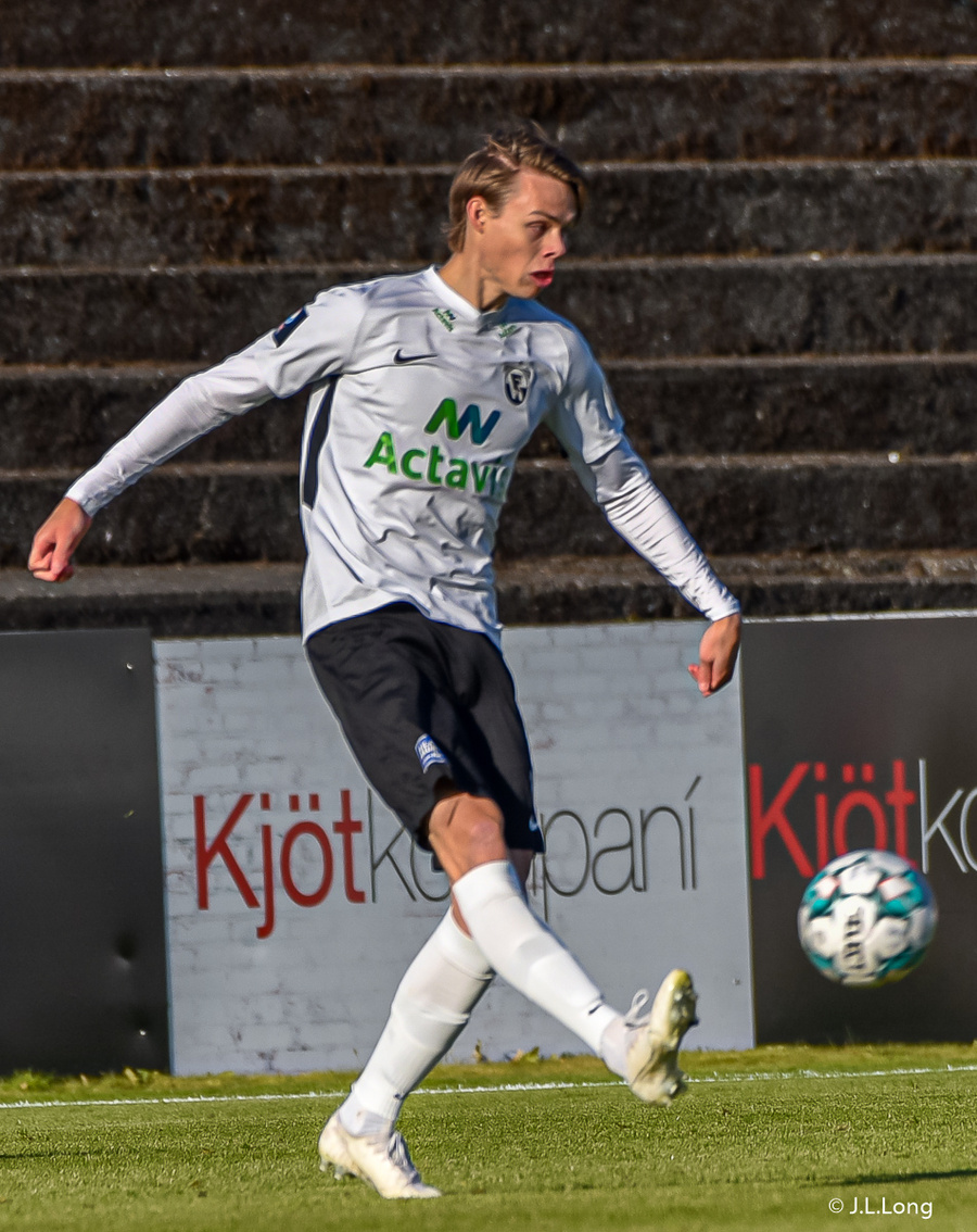 Jónatan Ingi í færi hægri meginn í teignum en nær ekki að leggja boltann almennilega fyrir sig og skot hans í varnarmann og það í fang Hannesar.