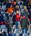 Úlpa, húfa, vettlingar og sólgleraugu líklega staðalbúnaður í stúkunni.