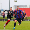 Vuk tekur skotið úr spyrnunni sem var fast en þokkalega beint á Jon sem slær boltann frá!