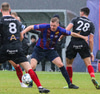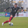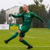 Fær boltann frá Kára og nær að snúa og skjóta en Guy ver.