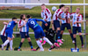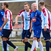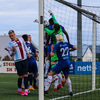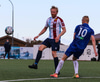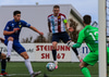 spyrnan fór í varnarvegginn, Harley náði frákastinu og tók skot sem fór yfir