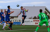 Sævar Atli með skalla fyrir leiknismenn eftir aukaspyrnu og boltinn fer beint í fangið á markmanni Víkinga Konráði