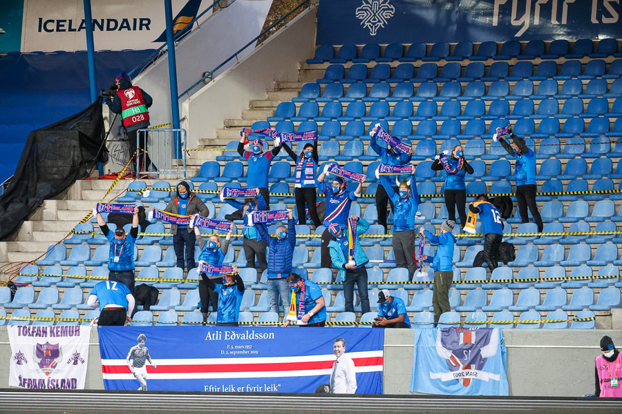 Það er alveg klárt að Svenni formaður Tólfunnar er að skila sínu starfi uppá tíu. Þó aðeins séu leyfðir fáir áhorfendur þá skiptir máli að þeir séu tilbúnir að syngja og tralla og Tólfan fer vel af stað. Maður finnur það klárlega að það er stór munur að leyfa strax smá hóp. Gerir mikið fyrir leikinn.