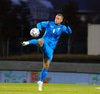 Vel lesið hjá Gulla sem tæklar fyrir sendingu ætlaða út á vinstri væng Rúmena. Gestirnir eiga innkast.