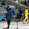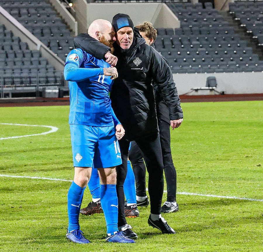 Liðin eru að hita upp þessa stundina. Tólfan að koma sér fyrir í hólfum, 20 í hverju hólfi. Erik Hamren fylgist með frá hlaupabrautinni og spjallar við landsliðsnefndarmanninn Magga Gylfa á sama tíma. Fámennur hópur fjölmiðlamanna á leiknum í kvöld, aðeins einn frá hverjum miðli fyrir utan frá rétthafanum. Allir með grímur og hitamældir fyrir leik. Hálftími í þetta!