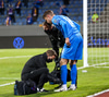 Kári Árnason er að fara af velli, það virðist nokkuð ljóst. Sverrir Ingi kemur inn í hans stað.