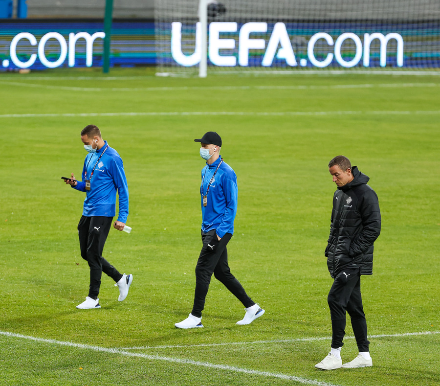 Íslensku leikmennirnir voru skimaðir í gær en allir reyndust neikvæðir þegar niðurstöður bárust í dag.