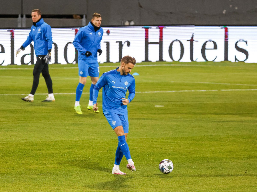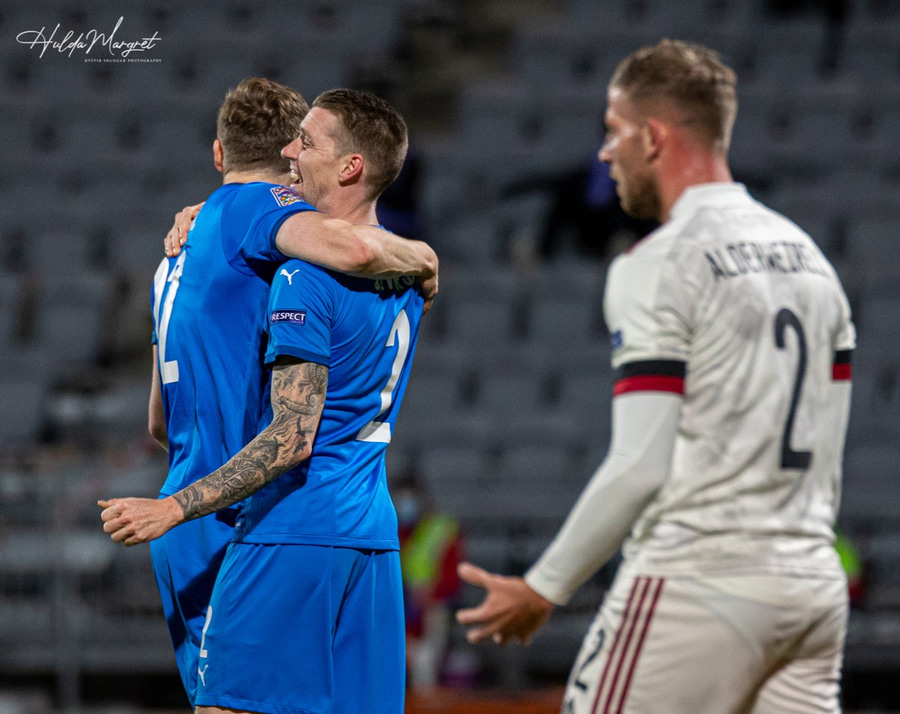 Það má vekja athygli á því að Birkir Bjarnason er fyrirliði íslenska liðsins. Ég hef reynt allt hvað ég get til að taka bandið af Alberti hér í lýsingunni en Albert er þrjóskur.