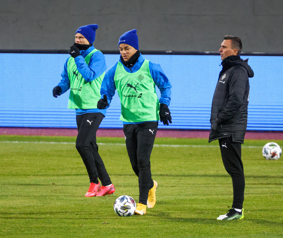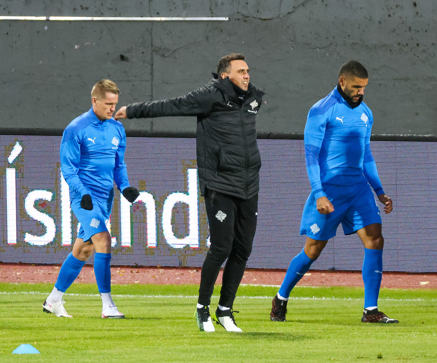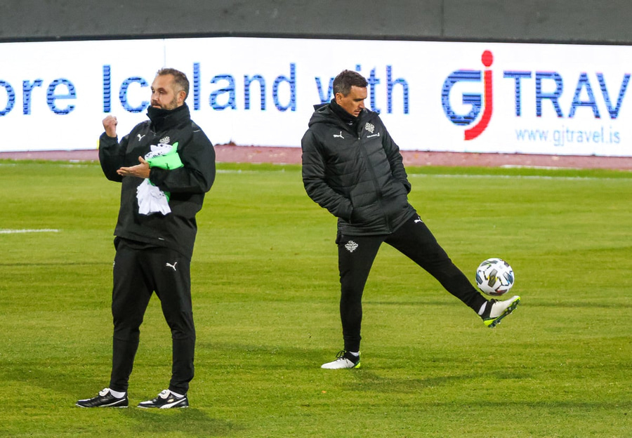 Í þeirra stað á hliðarlínunni verða þeir Arnar Þór Viðarsson, þjalfari U21 árs landsliðsins, og Davíð Snorri Jónasson, þjálfari U19.