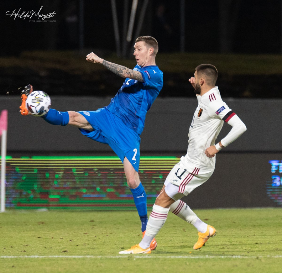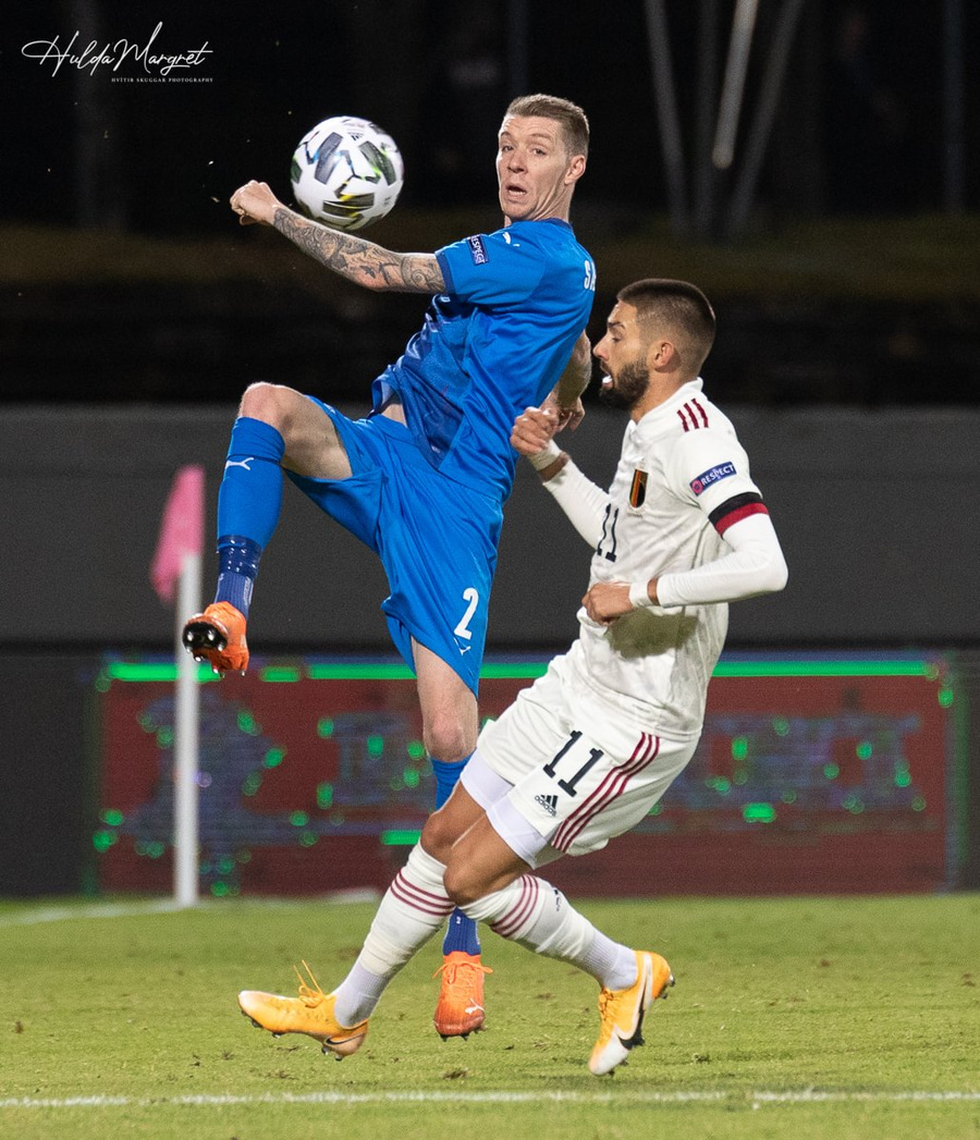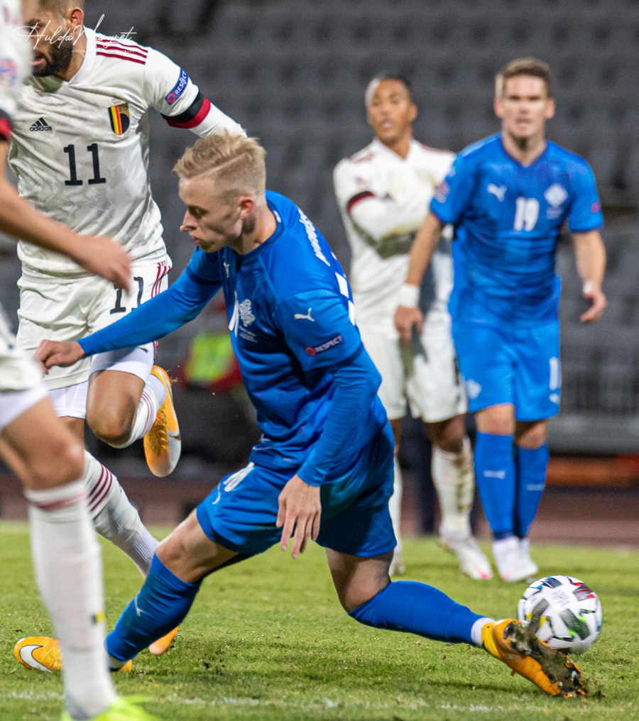 Margt jákvætt. Of mikil virðing fyrir Belgum fyrstu 10 en vindurinn tók hrollinn úr okkar mönnum. Lukaku skrÃÂmslið er óstöðvandi og það veit Hólmar eftir þennan leik. Þurfum að reyna halda meira àboltann og blokkera sendingar á Lukaku.
