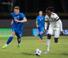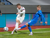 Hólmar gerir mjög vel úti á vintri kantinum og stígur mann út og vinnur innkast fyrir Ísland.