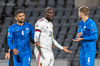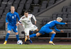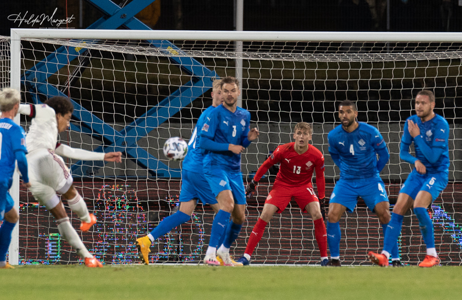 Laglega spilað hjá íslenska liðinu. Góð sending upp völlinn á Albert sem finnur Birki sem á fyrirgjöf sem er stöðvuð.
