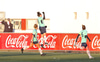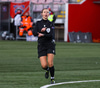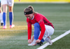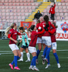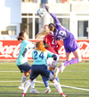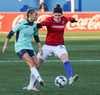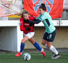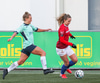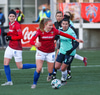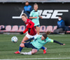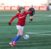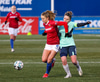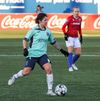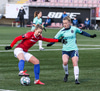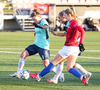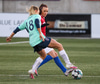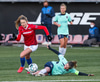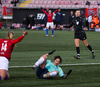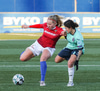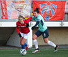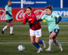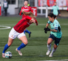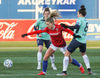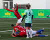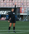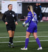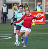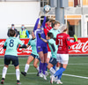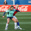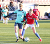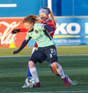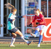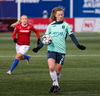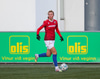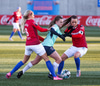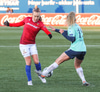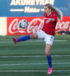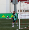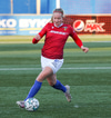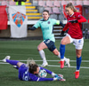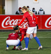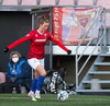 Nicole Robertson með skot af löngu færi sem Sandra á ekki í neinum vandræðum með.