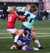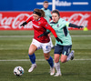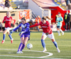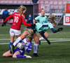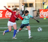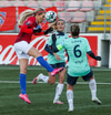 Zaneta Wyne með fyrirgjöf frá vinstri en skalli sóknarmanns ratar ekki á markið.