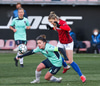 Hætta við mark Vals en Sandra fljótt að átta sig og stekkur á boltann og handsamar hann.