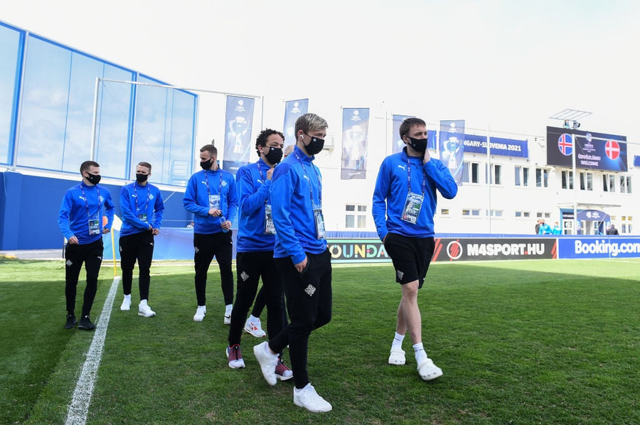🇮🇸🇩🇰 Okkar menn á leið á keppnisvöllinn #fotboltinet pic.twitter.com/HhbVAnDYSJ