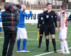 Helgi Mikael flautar og leikurinn er hafin. Emil Atlason á fyrstu spyrnu leiksins.