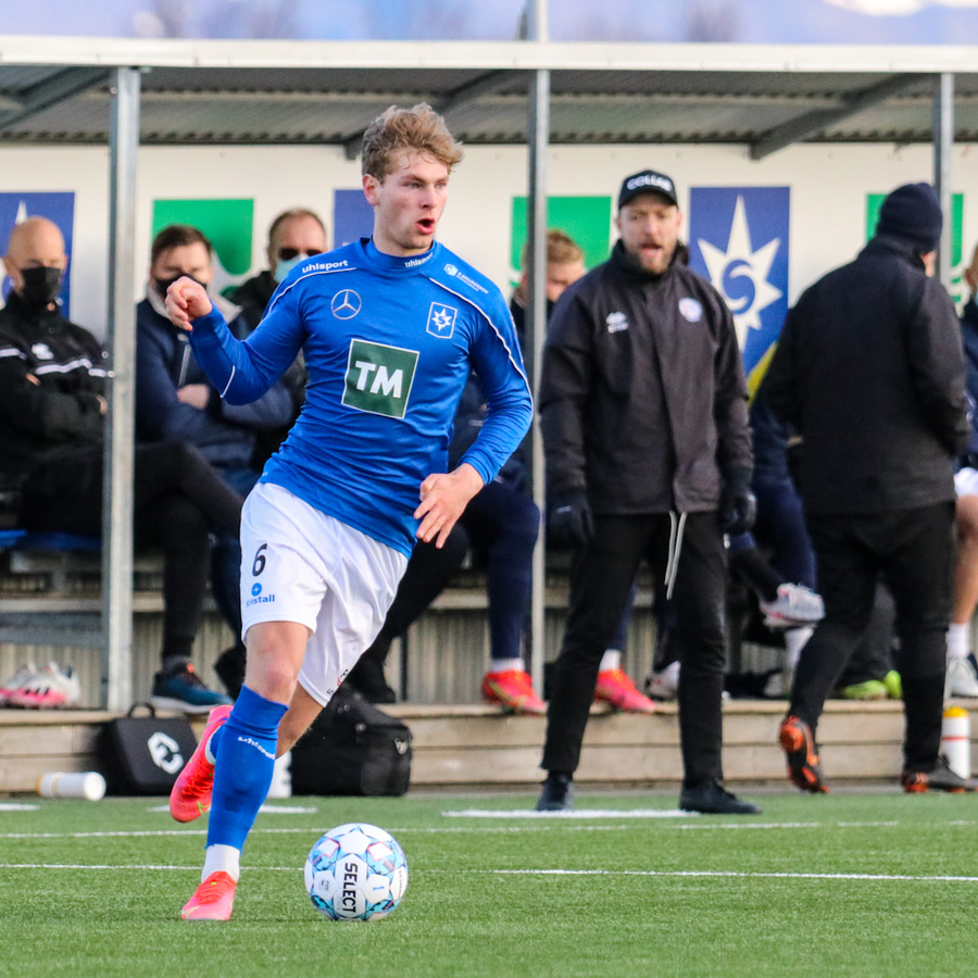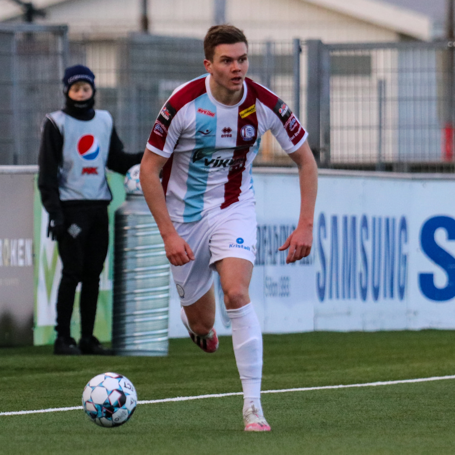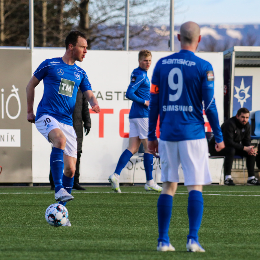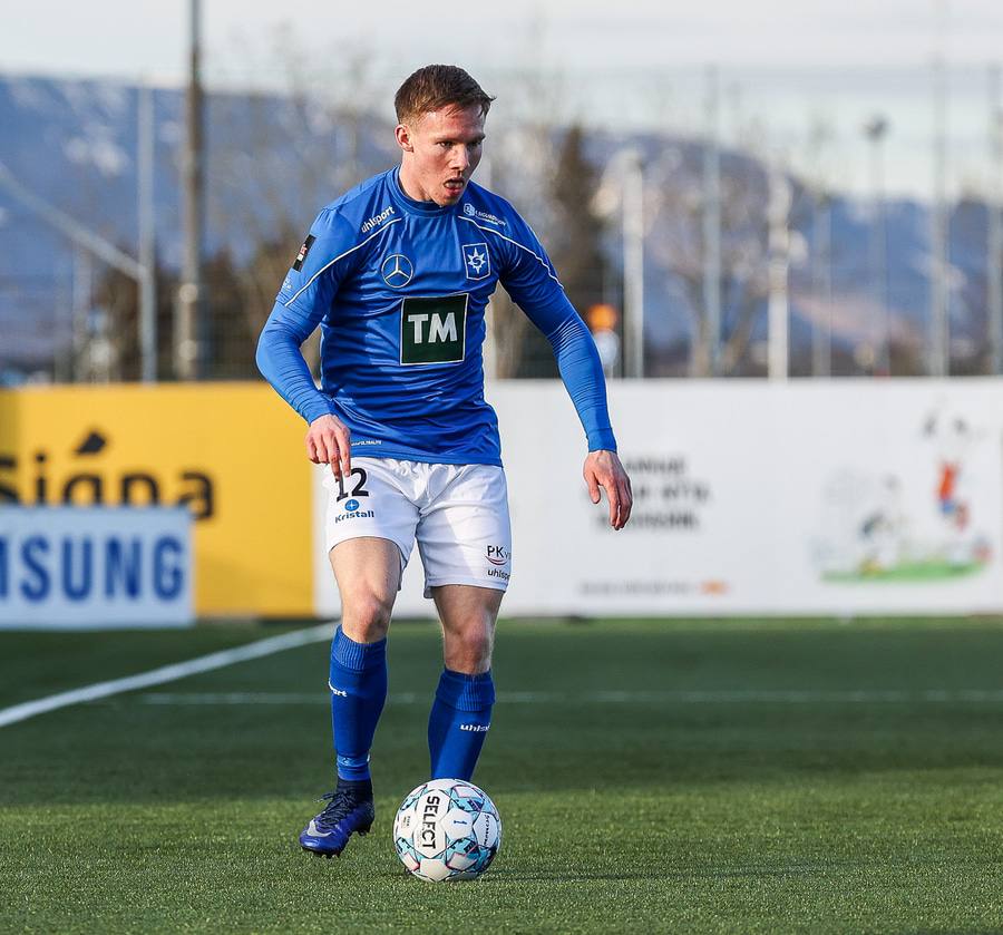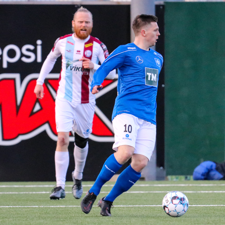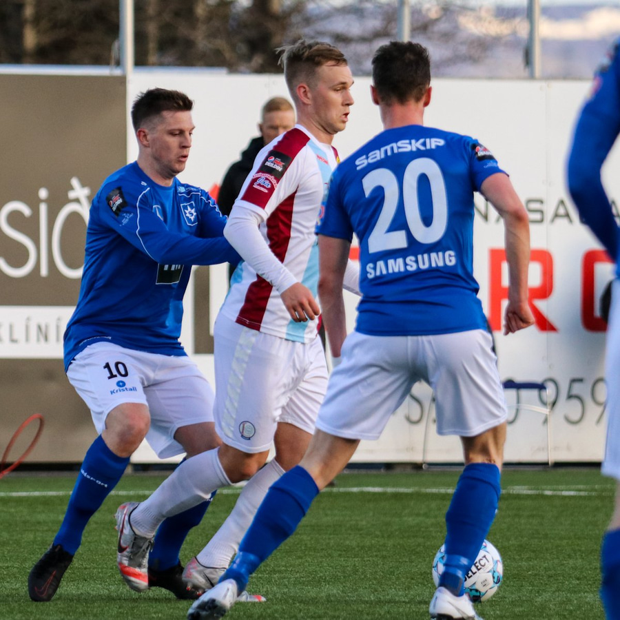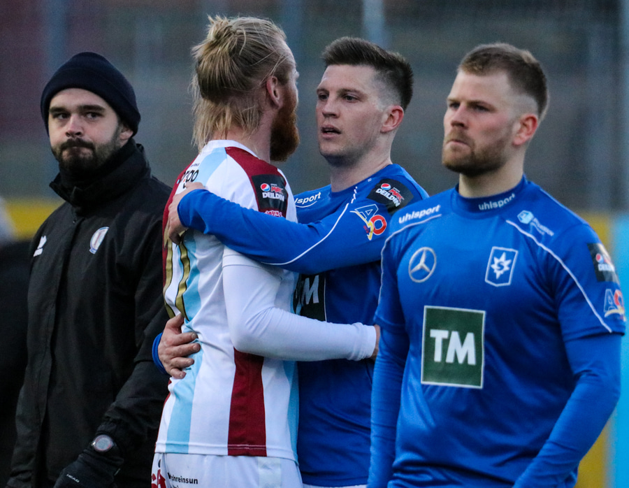 Tristan fær boltann hægra meginn og færir boltann yfir á Kristó Konráðs sem kemur með fyrirgjöf á Emil Atlason sem nær að halda boltanum inn á og reynir að koma með boltann út í teiginn en Smit grípur boltann.