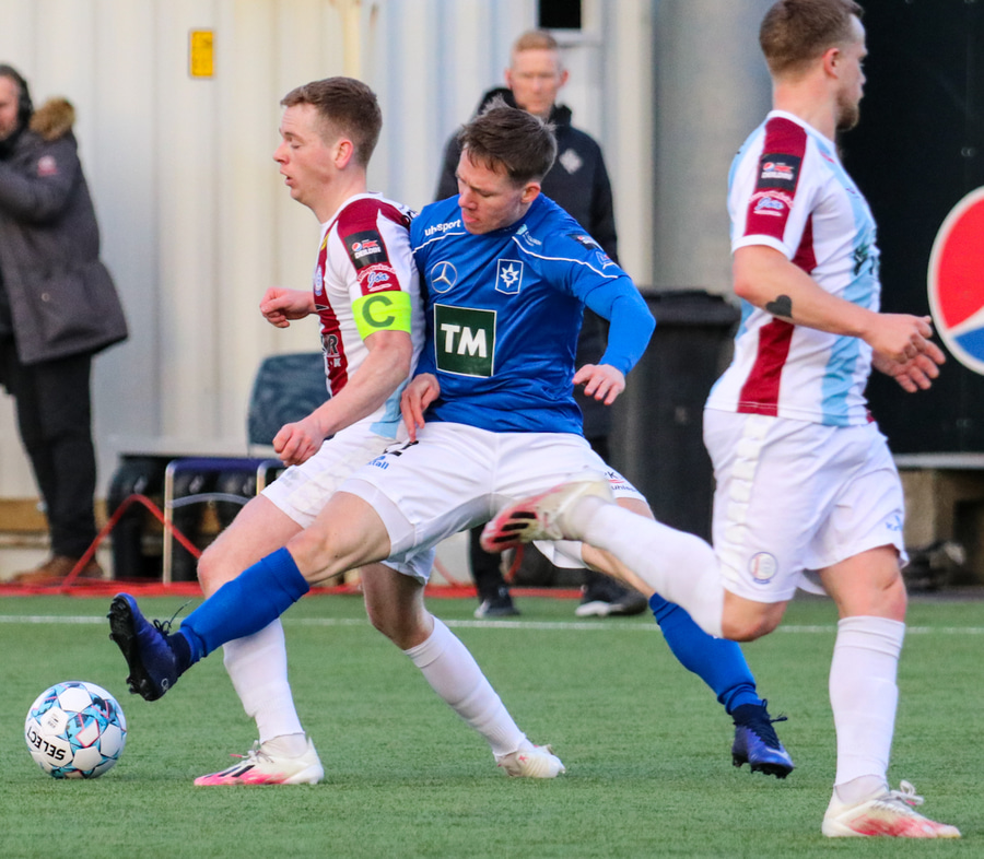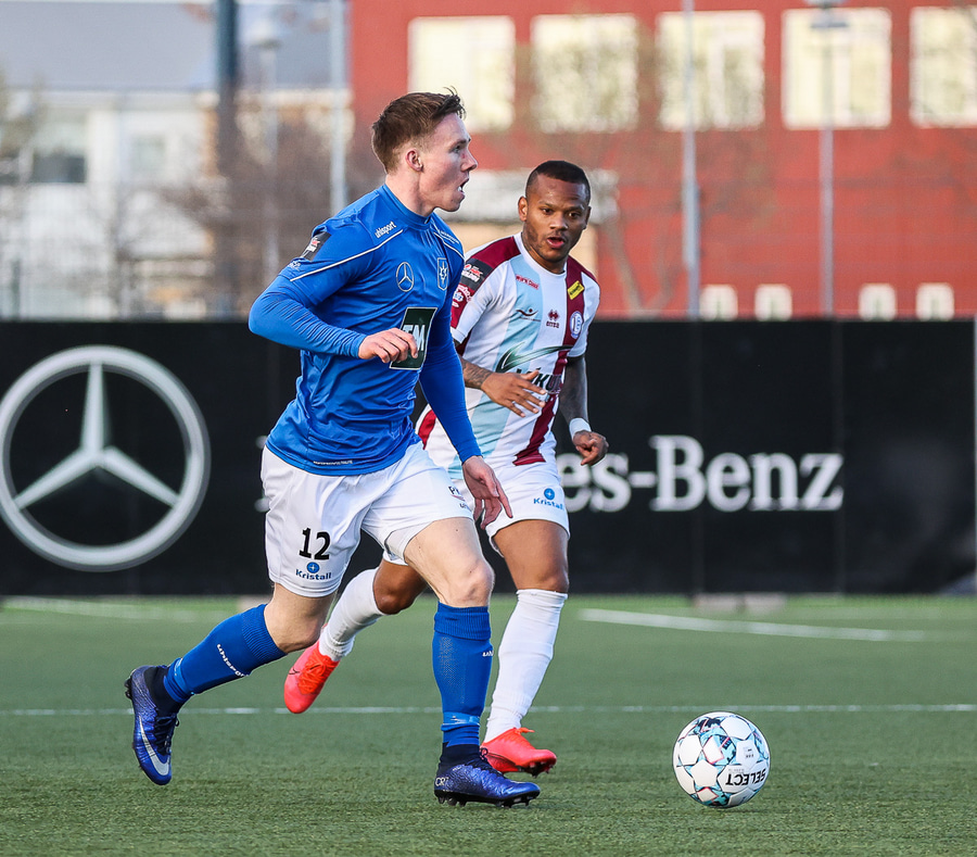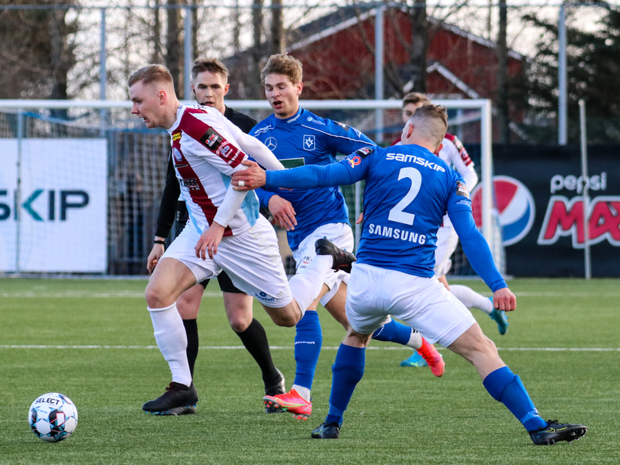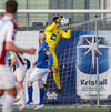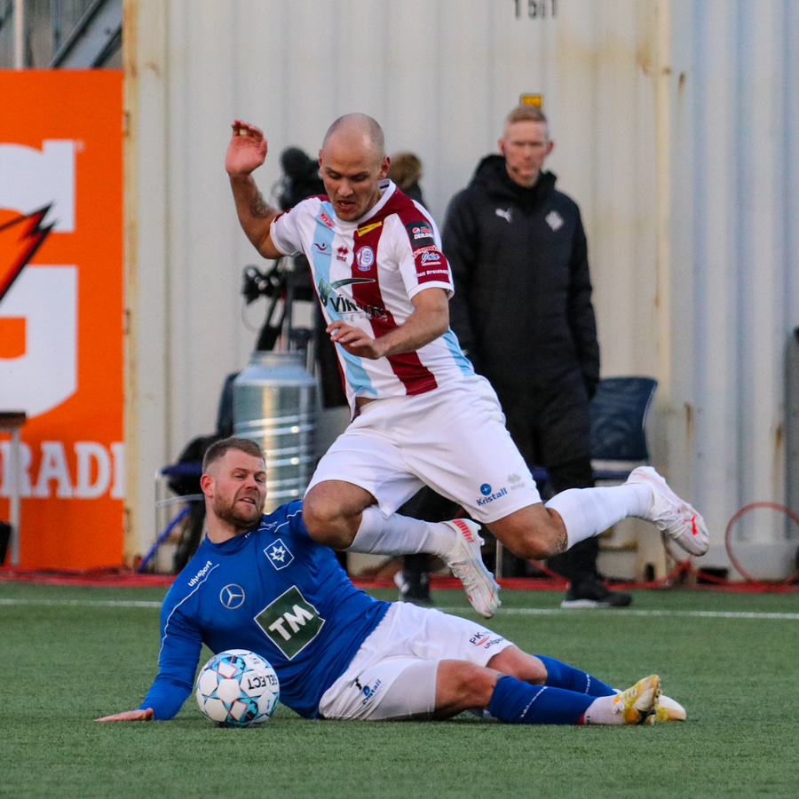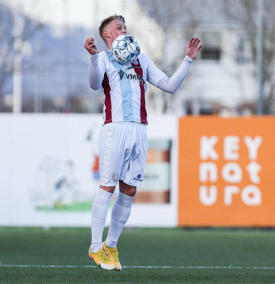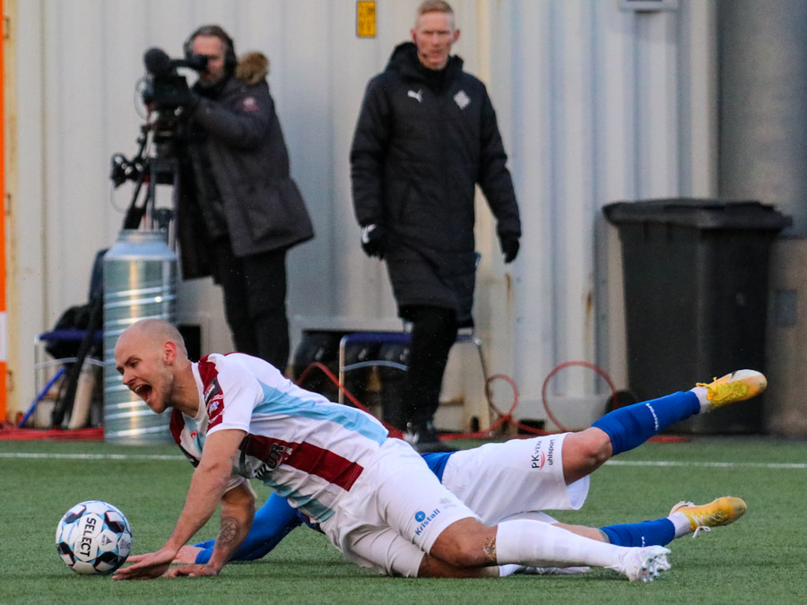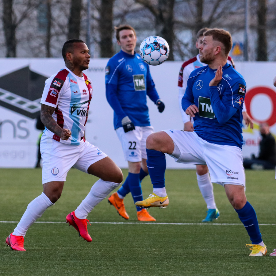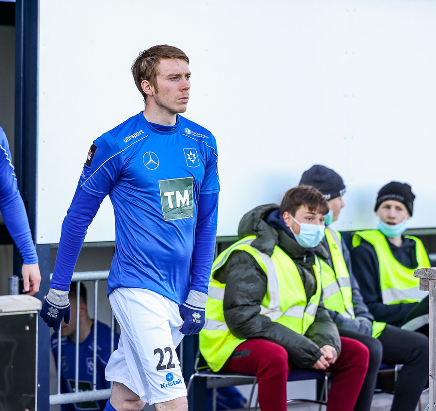 Tristan fær boltann hægra meginn og færir boltann yfir á Kristó Konráðs sem kemur með fyrirgjöf á Emil Atlason sem nær að halda boltanum inn á og reynir að koma með boltann út í teiginn en Smit grípur boltann.