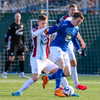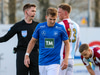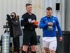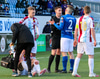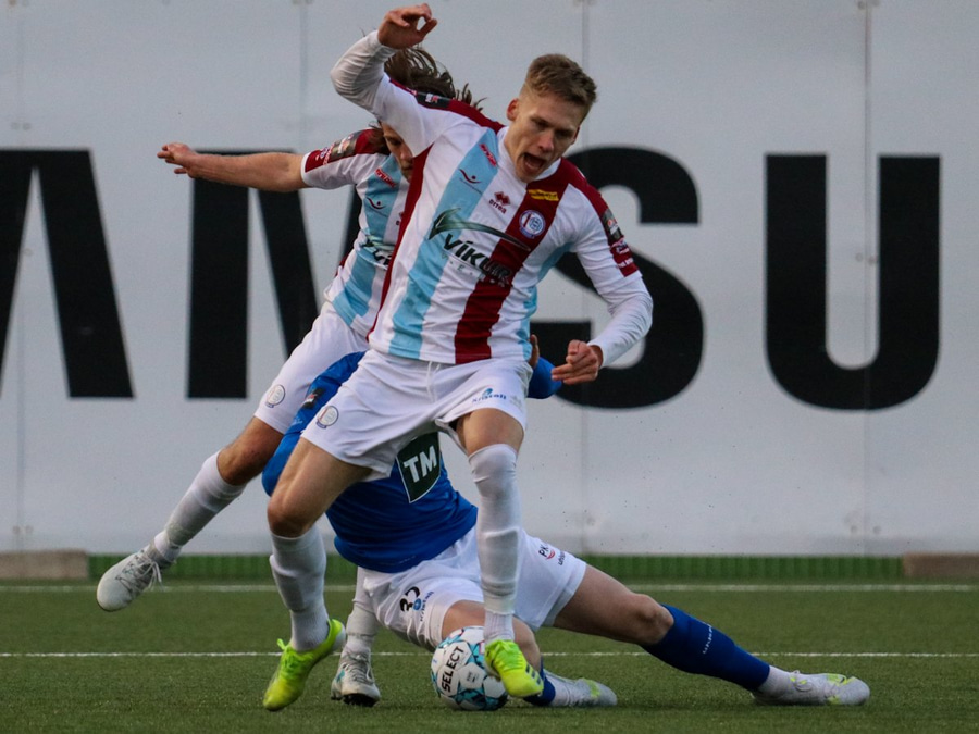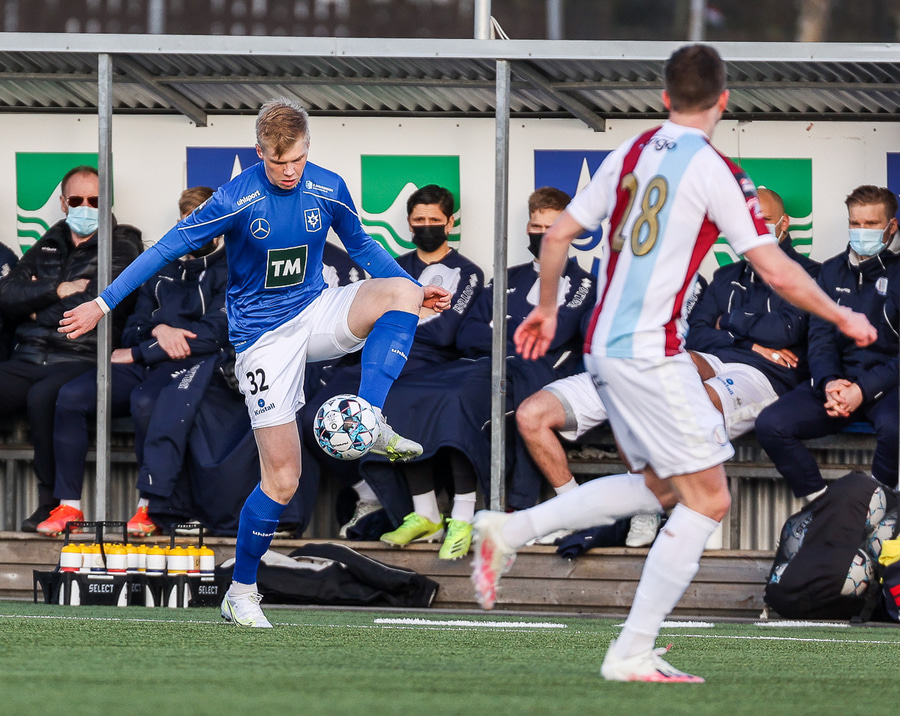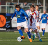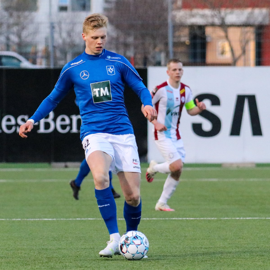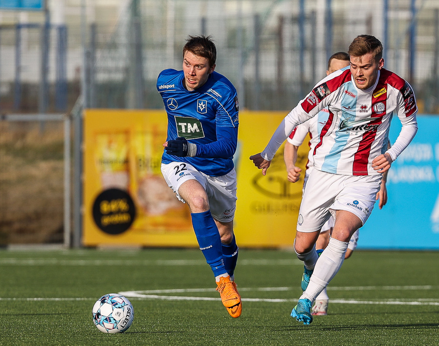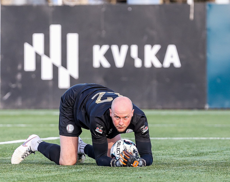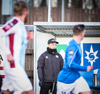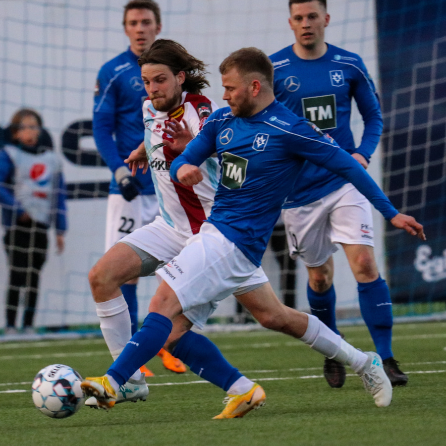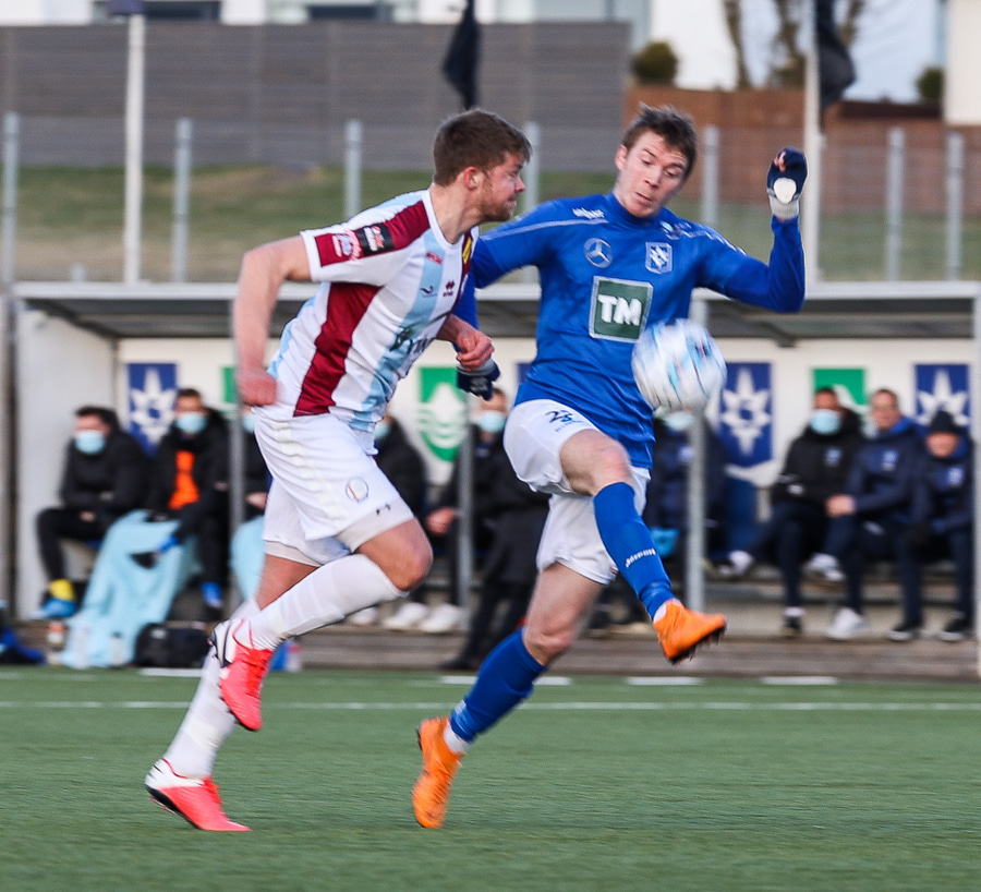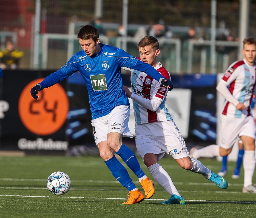 Tristan fær boltann hægra meginn og færir boltann yfir á Kristó Konráðs sem kemur með fyrirgjöf á Emil Atlason sem nær að halda boltanum inn á og reynir að koma með boltann út í teiginn en Smit grípur boltann.