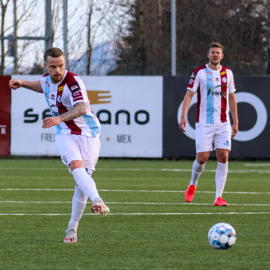 Danni Finns kemur boltann ætlaðan Sævari Atla en boltinn virðist beint á Danna Laxdal sem rennur og Sævar sleppur einn í gegn en skot hans beint á Halla.