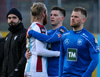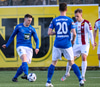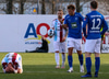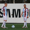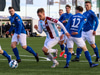 Hilmar Árni tekur hornspyrn og Smit kýlir frá. Brynjar Gauti og Ernir lenda saman og liggja eftir.