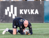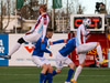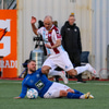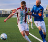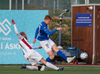 Kristófer Konráðs fær boltann við D bogan og nær skoti á markið en boltinn í hliðarnetið.