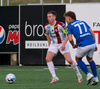 Heiðar Ægisson fær boltann og kemur með boltann fyrir á Sölva Snæ sem nær skoti en boltinn beint á Smit.