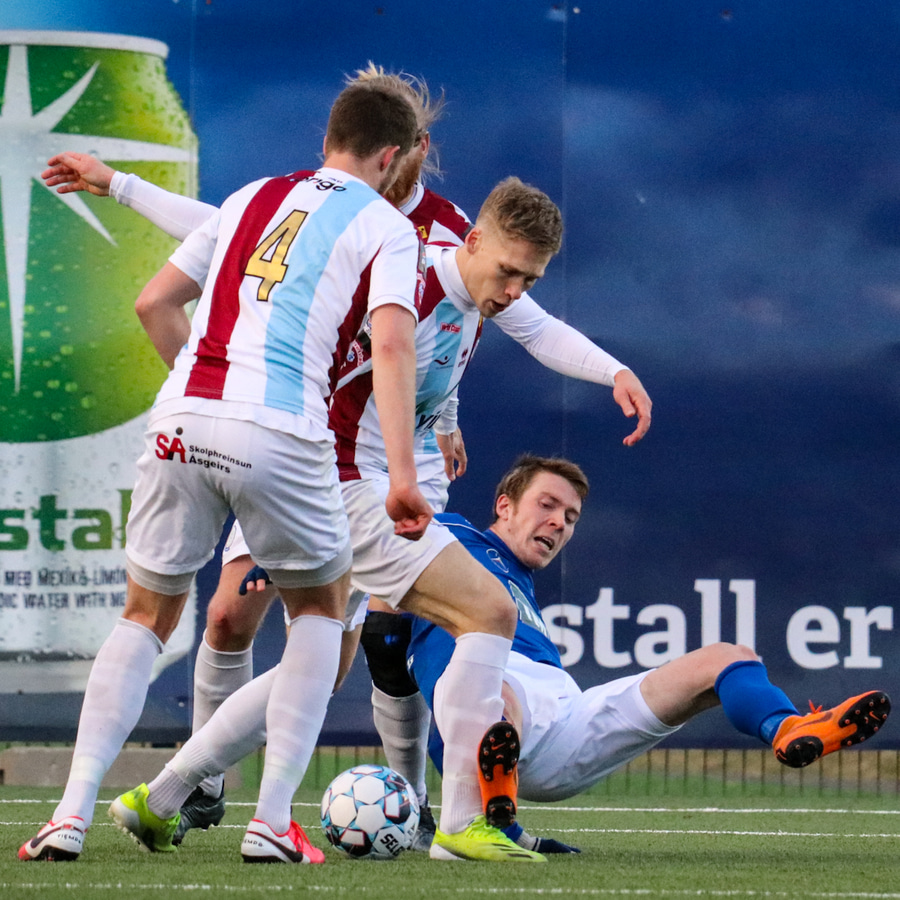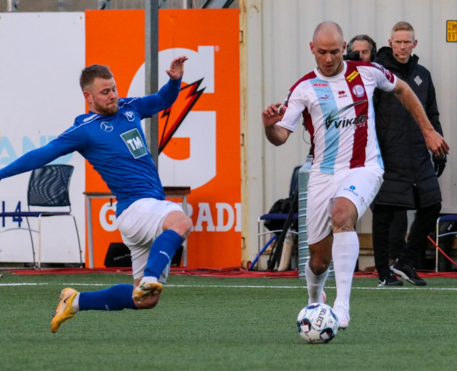 Hilmar Árni Halldórsson skorar þrennu en af virðingu við efra Breiðholt fagnar hann ekki mörkunum.