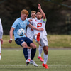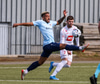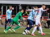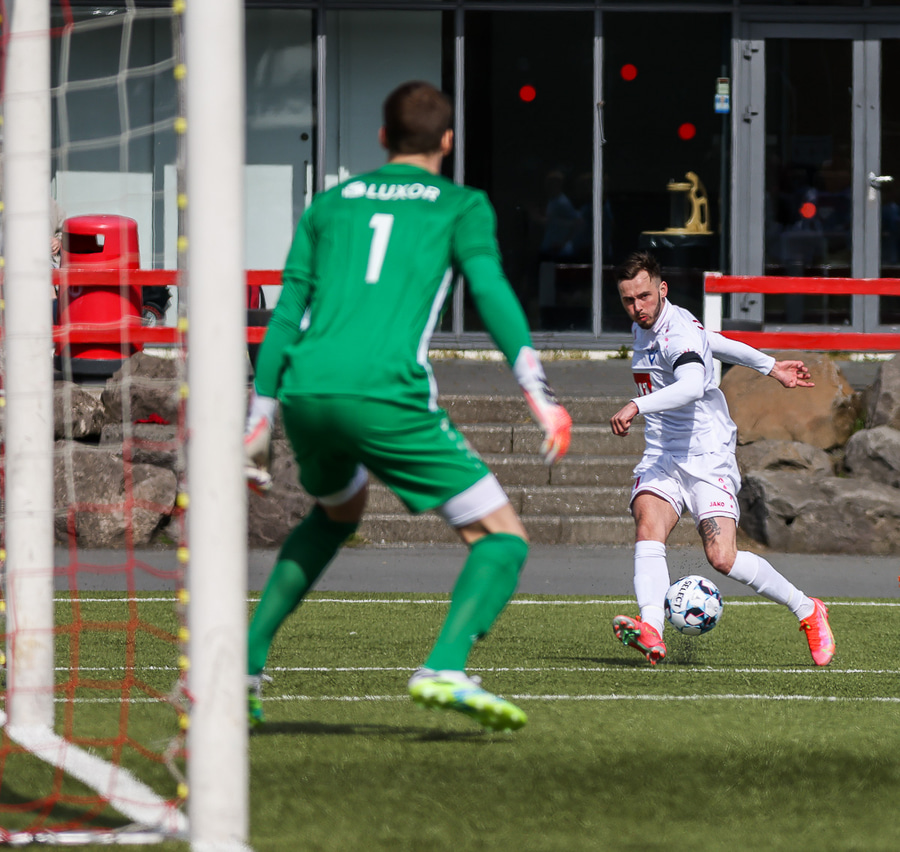 Sam Hewson hjá Þrótt vippaði boltann yfir markvörðin sem var kominn fyrir framan teig, en boltinn fór of mikið til vinstri og útaf.
