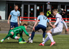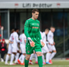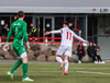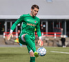 Daði Bergsson hjá Þrótt með þrumu skot vinstra meginn við markið beint á Konráð í markinu.