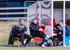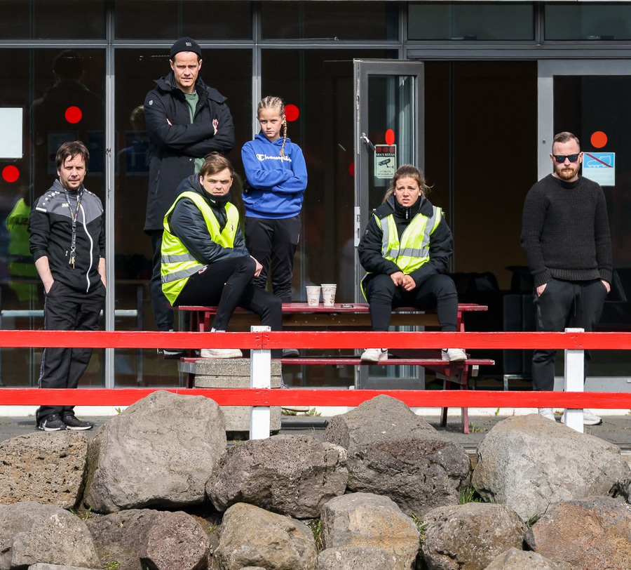 Áhorfendur eru byrjaðir að flokkast inn á völlinn. Stúkan er skipt í tvö hólf, A og B hólf, og má 100 manns vera í hvert hólf, samkvæmt almannavarnareglum.