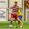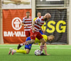 Hendrickx neglir boltanum á markið og Arnar ver hann með herkjum út í teiginn þar sem Martin nær að renna sér í boltann á undan Ásgeiri og hornspyrna niðurstaðan.