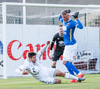 Halldór Páll ver glæsilega frá Fred Saraiva sem var kominn í mjög gott færi.