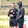 Bombar boltanum í burtu eftir að dómarinn hafði dæmt aukaspyrnu á Fram
