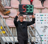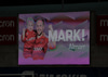 Liðin ganga út á völl við Enter Sandman og Guðmundur Þór Júlíusson afhendir fyrirliða Vals, Rasmus Christiansen blómvönd fyrir leik.