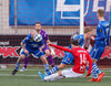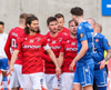 Eftir atgang í teig HK er Rasmus dæmdur brotlegur og myndast smá æsingur í mönnum og Patrick fær einnig spjald.