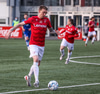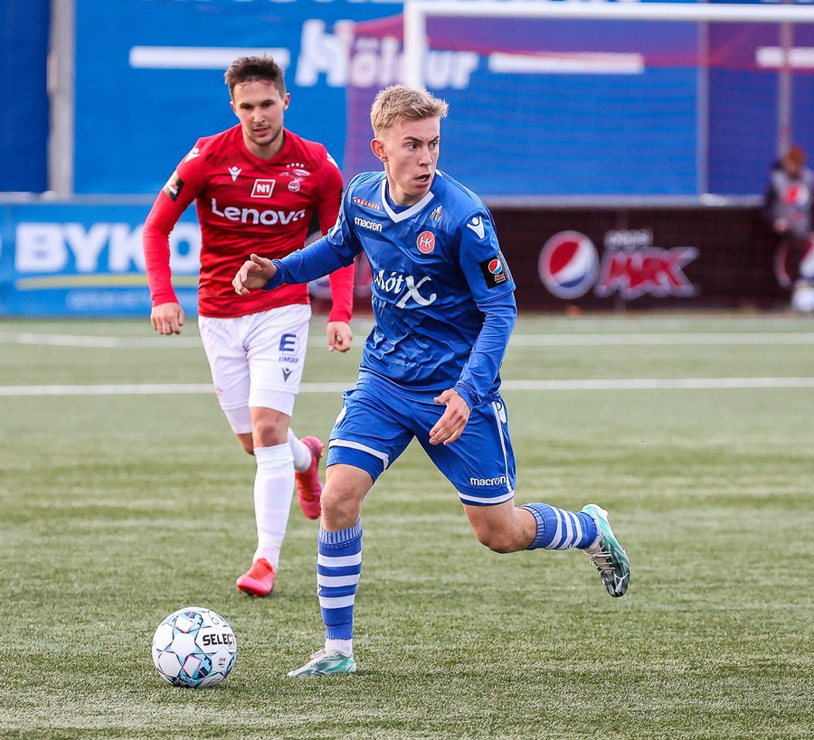 Arnar Freyr með langt útspark á Birnir Snær Ingason sem er allt í einu einn á móti Johannes Vall úti hægra meginn og nær að harka sig inn á teig en Valsmenn koma boltanum frá.