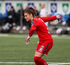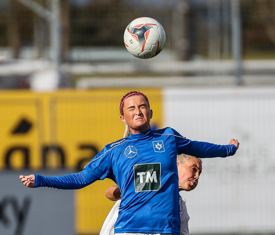 Berta með fyrirgjöf og Olga er ein og hoppar upp í skallann en Chante brýtur á henni.