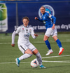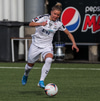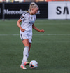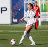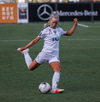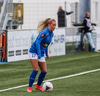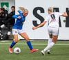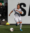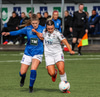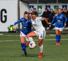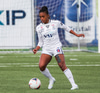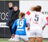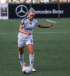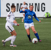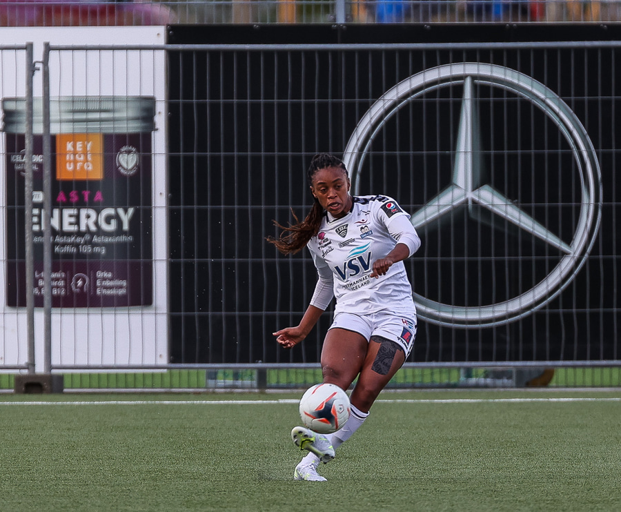 Alma fær boltann á hægri kantinum, er í baráttunni við Antoinette en nær að koma með góða fyrirgjöf sem Katrín Ásbjörns skallar rétt framhjá markinu.