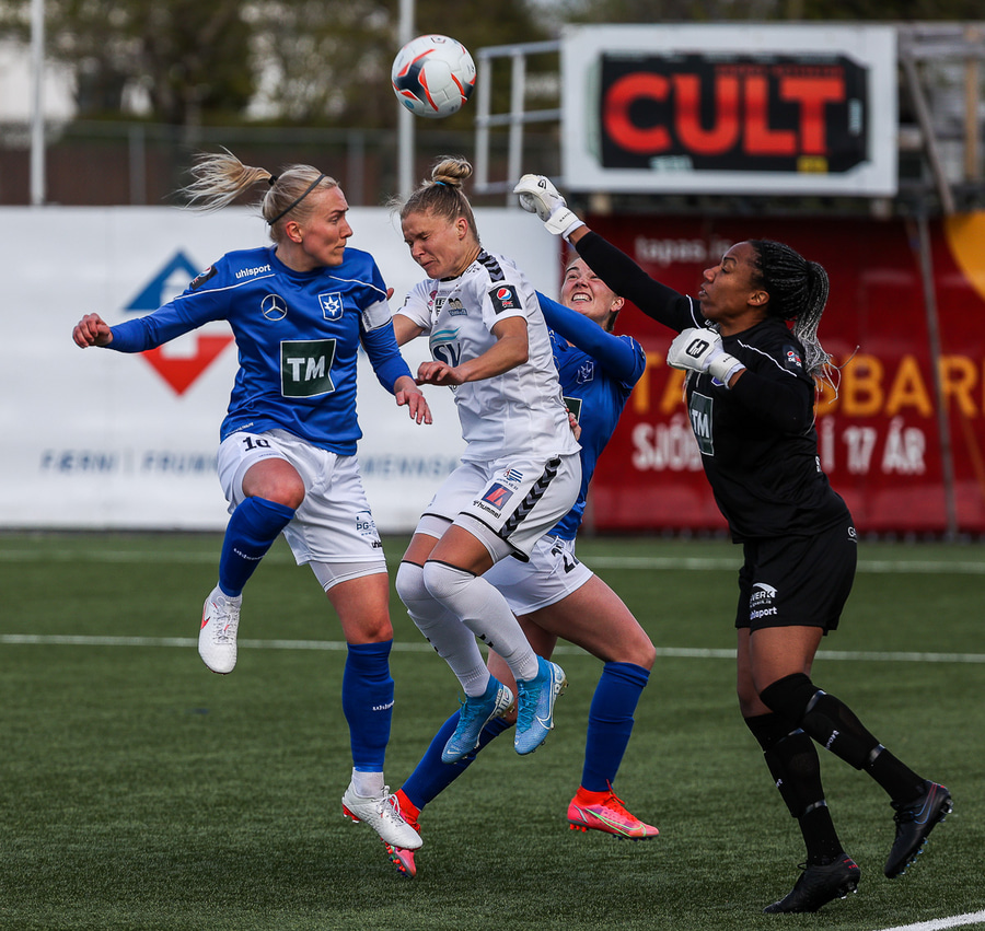 Betsy kemst ein gegn Auði sem ver boltann og það myndast klafs beint fyrir framan markið og boltinn er á leiðinni inn en Williams nær að bjarga á ögurstundu!