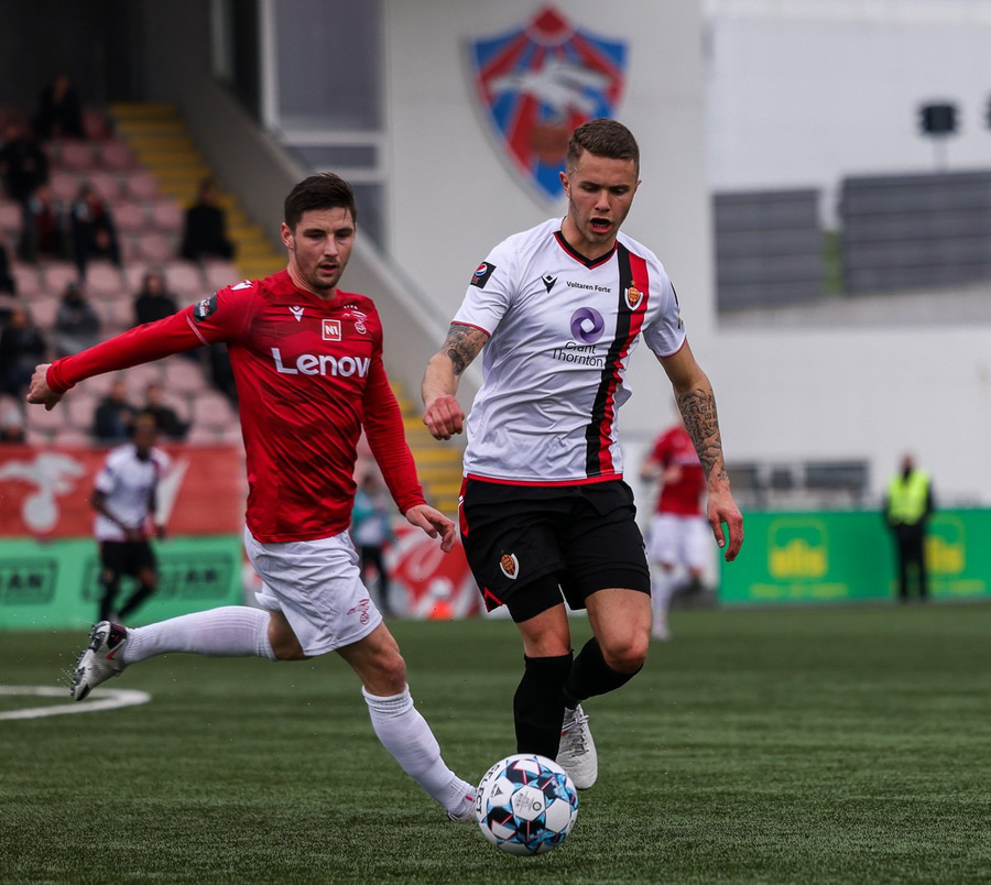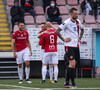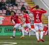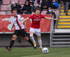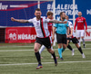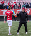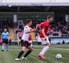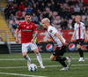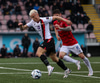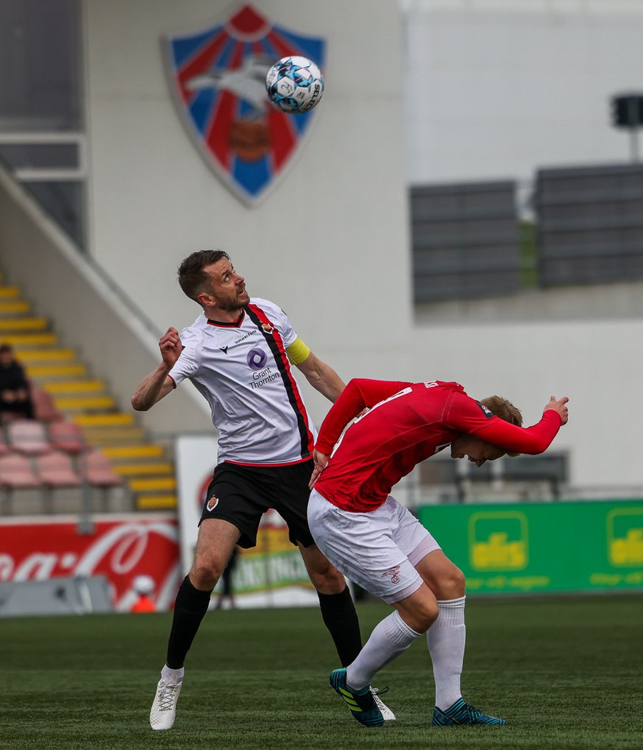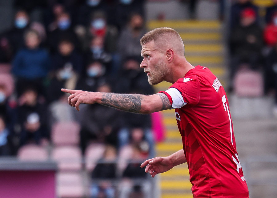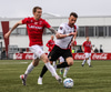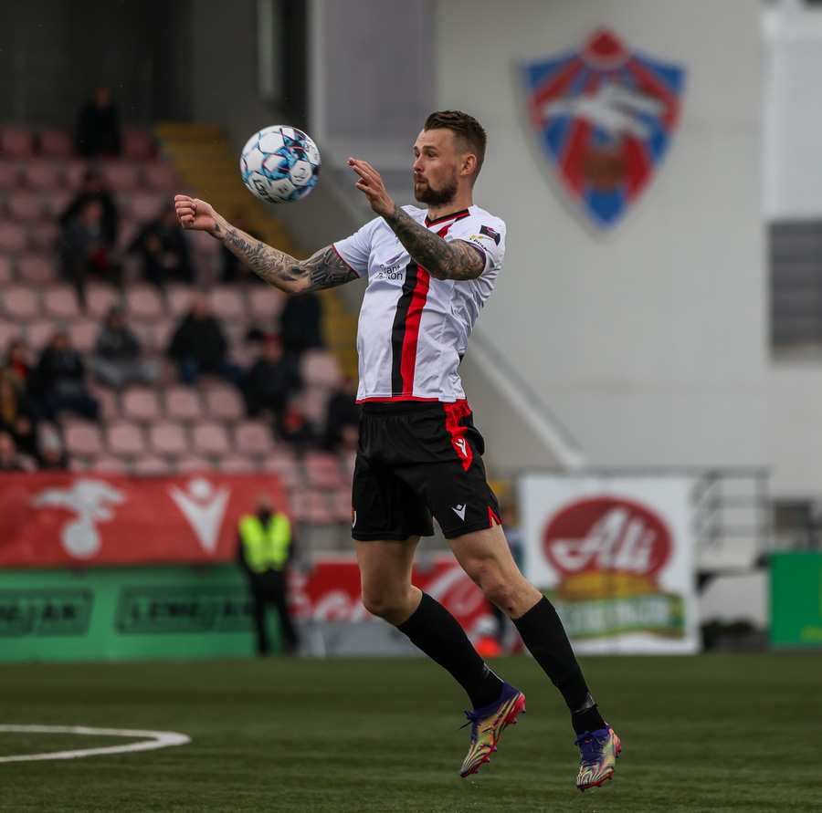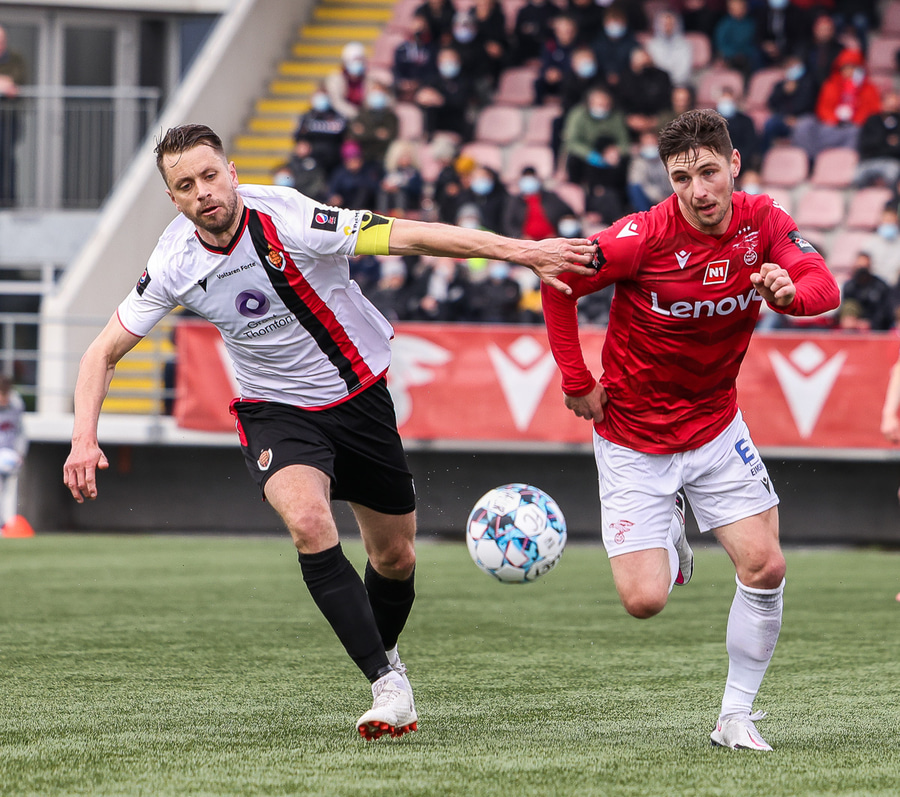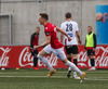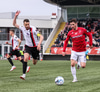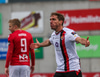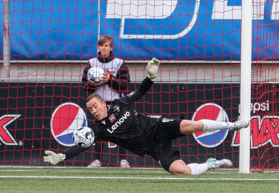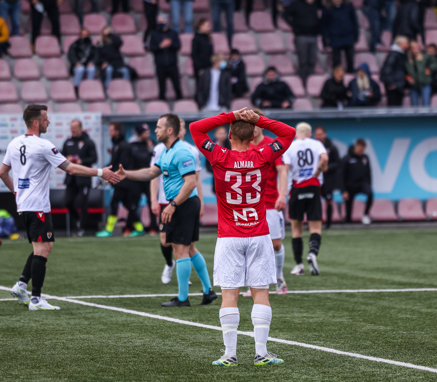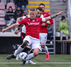 Rasmus lyftir boltanum inn fyrir á Sigga Lár og Þórður kemur á ferðinni og ætlar að koma boltanum í burtu en mistekst það og Siggi Lár kemst í boltann en Þórður Ingason klippir hann niður.