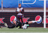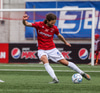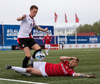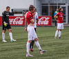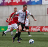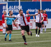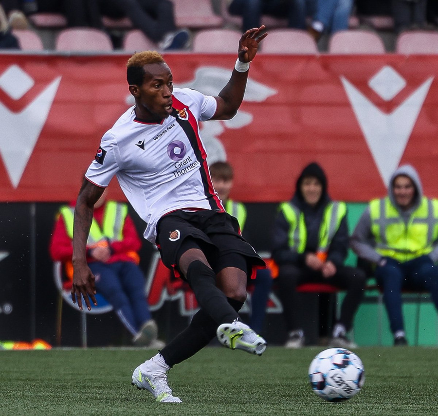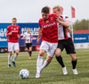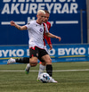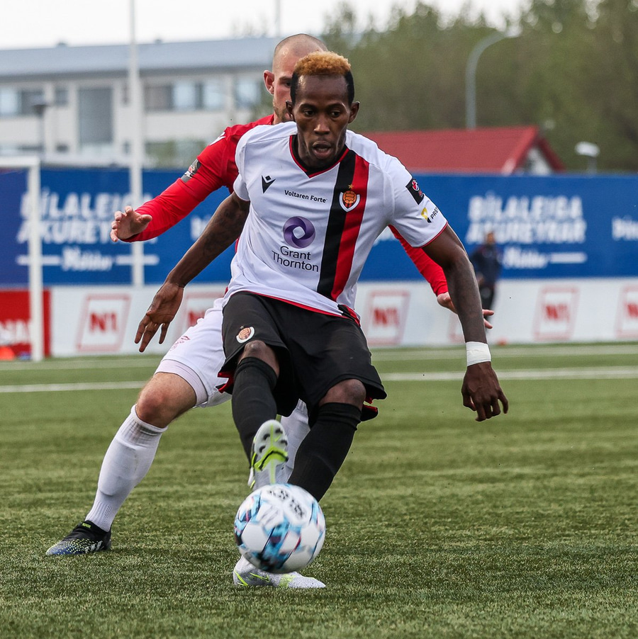 Kwame leikur inn á völlinn og kemur boltanum yfir á Karl Friðleif sem finnur Helga Guðjónsson sem nær ekki stjórn á boltanum og boltinn á Hannes.