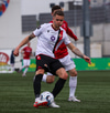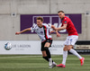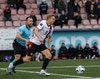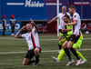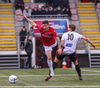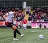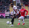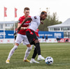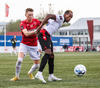 Boltinn dettur fyrir Kwame sem fíflar tvo varnarmenn Vals og lætur síðan vaða en boltinn yfir markið.